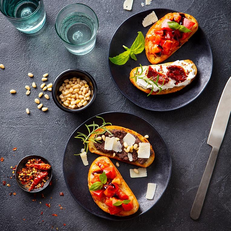 Pasta fresca bañada en un vibrante pesto casero, con el toque dulce de tomates secos y piñones.