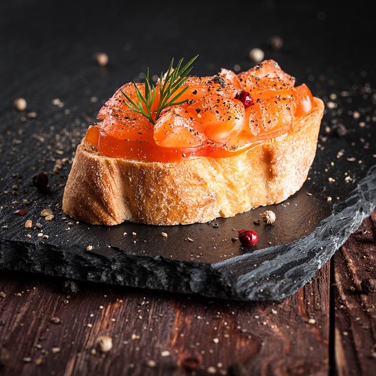 Delicadas lonchas de salmón ahumado, una experiencia de sabor y textura inolvidable.